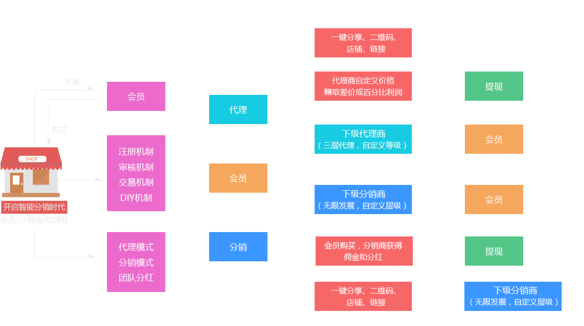 对于商家而言,代理商不仅是代理人,也可以是消费者,双重身份,随意切换,推广产品的同时还能刺激消费,多渠道盈利。