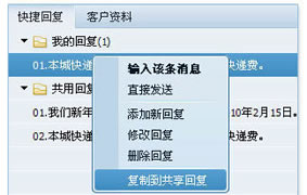 员工可设置部分常用的回复用语、礼貌用语等作为快捷回复语。使员工与客户的沟通更快捷、更高效。 ![]() 快速回复功能除了员工自行设置快捷回复语之外,还支持快速回复内容的共享,每个工号都可以在“我的回复”区域里右键点击,将自己的快速回复内容复制到共享回复中,便于其他工号在答复咨询时使用。 ![]() 客户资料:记录来访客户详细资料