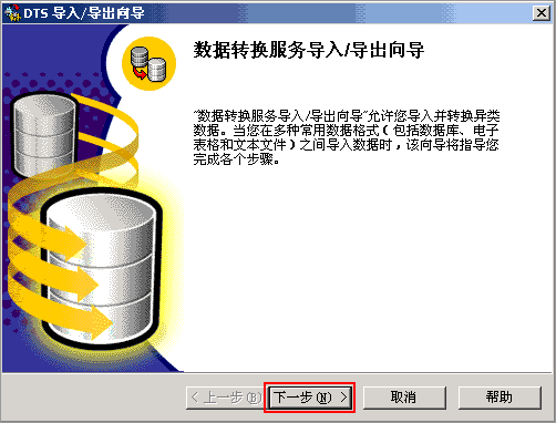 | 2. 进入DTS导入/导出向导,点击“下一步”按钮继续 | |